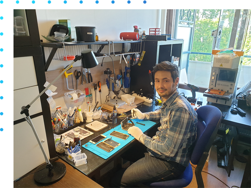Ik ben Soufiane Mrabet. Ik heb van jongs af aan een passie voor consumenten elektronica en technologie, met name mobiele telefoons. Ik merkte al snel dat ik voornamelijk geïnteresseerd was in de binnenkant. Hoe ziet het eruit? Hoe werkt het? Hoe kan zoveel technologie is zo een kleine behuizing passen? Zodoende begon ik het het openschroeven van allerlei apparatuur, zoals afstandsbedieningen, digitale camera’s en mobiele telefoons. Dat werd vrij snel een hobby. Ik begon reparaties uit te voeren voor familie en vrienden, en daarna ook voor buren en klanten en de omgeving. Inmiddels al ruim 3 jaar een bedrijf opgericht en kan ik mijzelf een professionele reparateur noemen :) Ik vind drie dingen het belangrijkst: een goede service, goede reparatie en tevreden klanten.